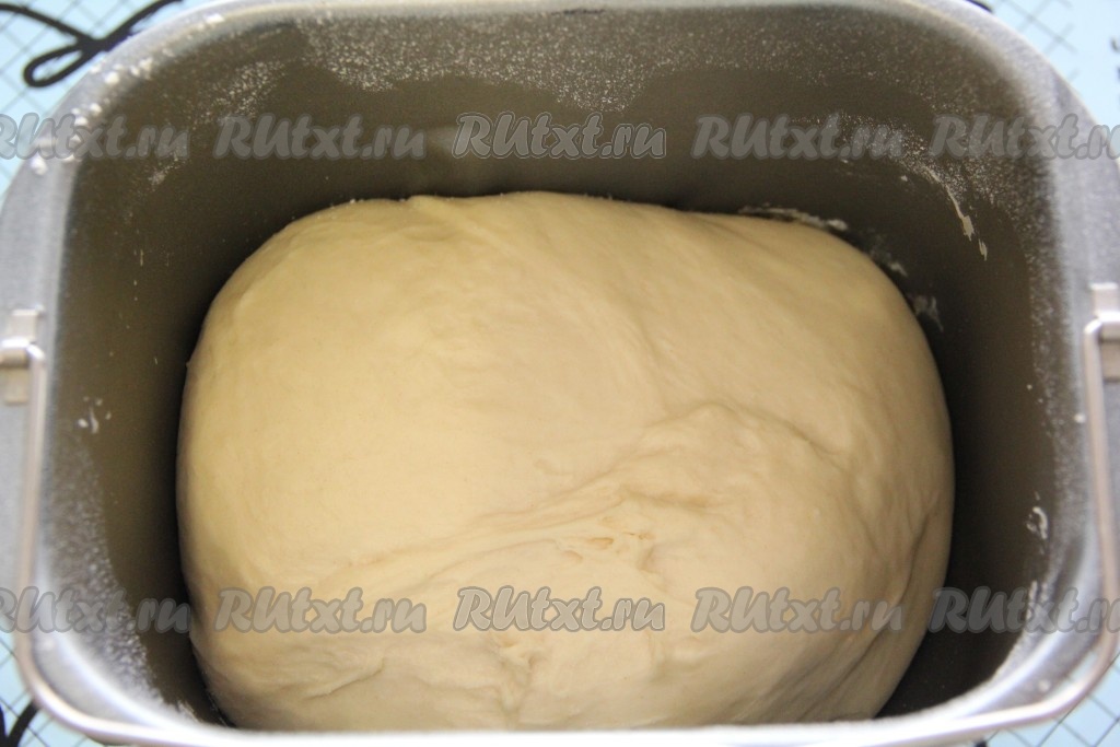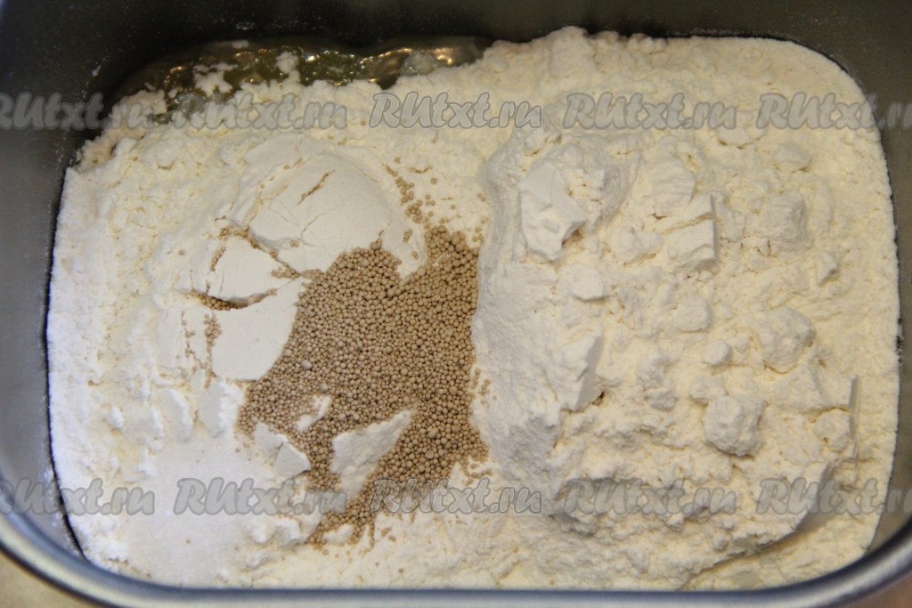 Затем добавить просеянную муку, соль, дрожжи, выставить режим хлебопечки "Замес теста" (у меня он занимает 1 час 30 минут).