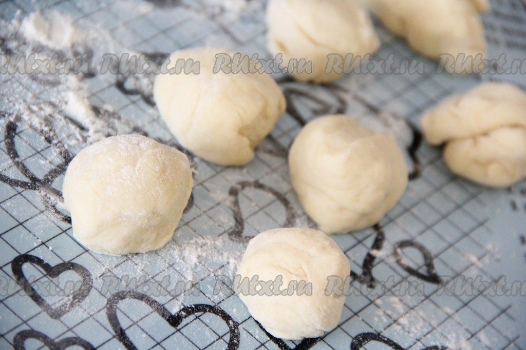 Тесто разделить на небольшие части. Размер пирожков определяйте сами. Сформировать пирожки можно любым способом.