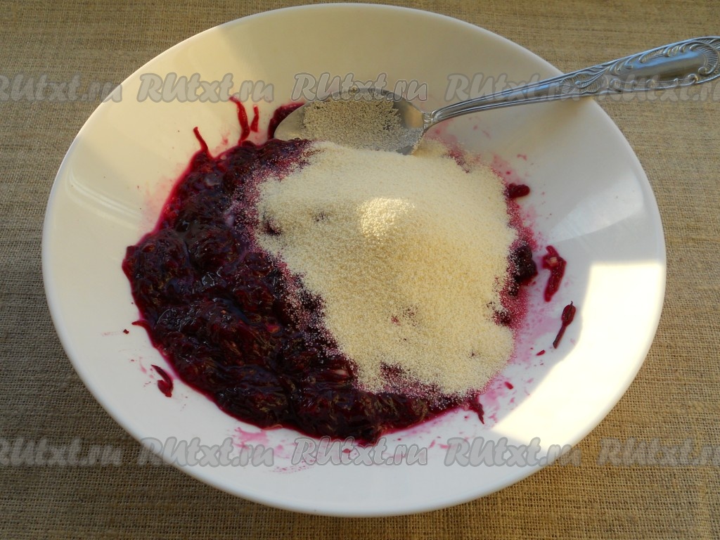 Тщательно перемешать свеклу с яйцом и всыпать манную крупу.