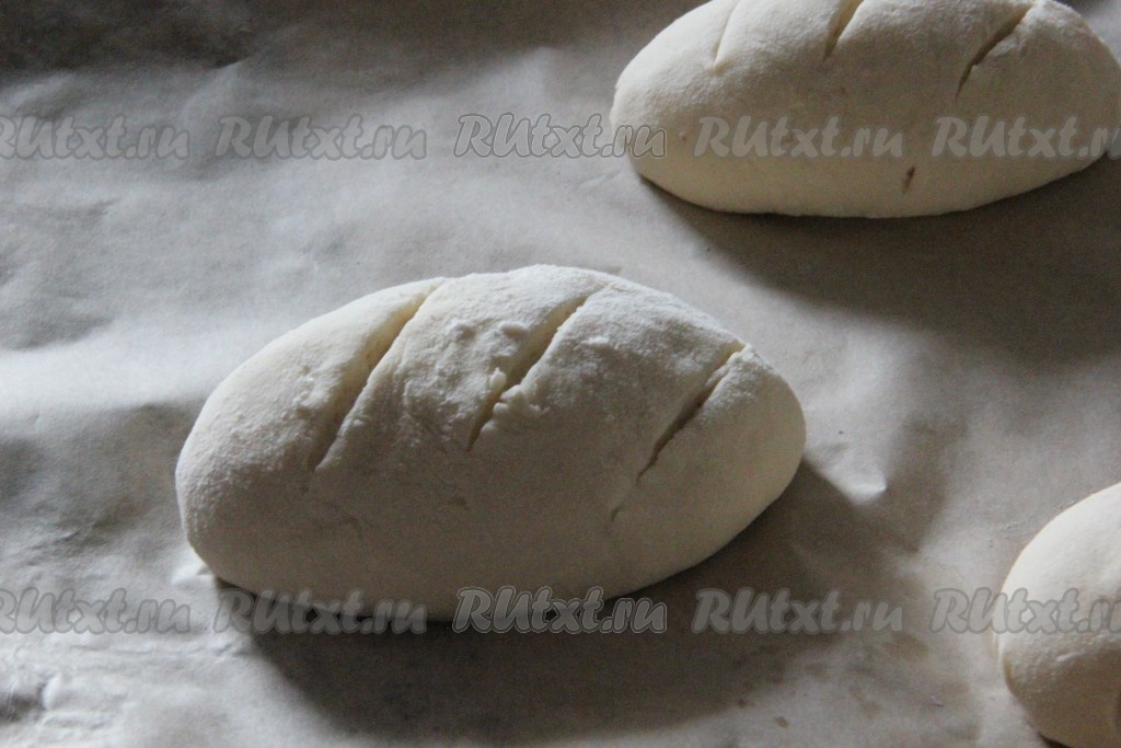 Оставить тесто на 90 минут для подъема, по истечении времени сделать острым ножом или лезвием на тесте надрезы.