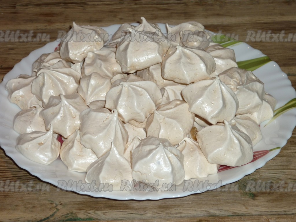 Готовое безе будет хрустящим снаружи и абсолютно сухим внутри. Вот сколько безе получается из 4 белков.