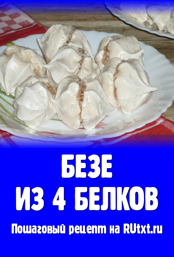 Предлагаю приготовить домашнее безе из 4 белков. Такой десерт готовится не очень сложно, да и потребуется для него минимальный набор продуктов, который, наверняка, есть у вас дома. Безе получаются лёгкими, воздушными, хрустящими. Они вкусны сами по себе, также из них легко приготовить простейшие пирожные, можно их использовать и для украшения домашнего тортика.