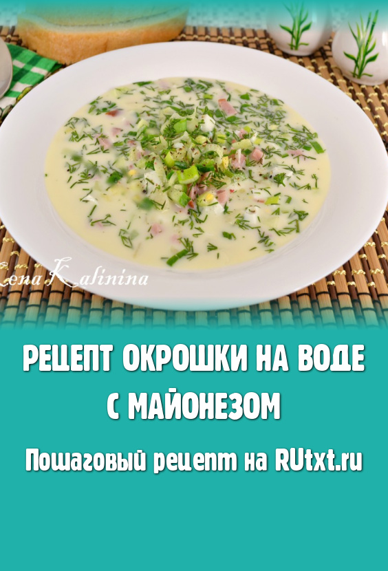Окрошка на воде с майонезом, приготовленная по этому рецепту, - ароматное, холодное первое блюдо для вашего стола. Окрошка получается легкой и очень вкусной. Это блюдо можно готовить с отварным мясом или вареной колбасой, я использовала ветчину.