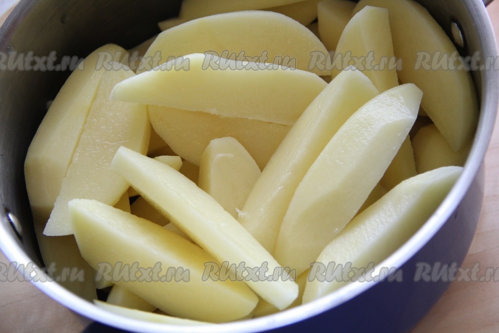 Картофель очистить и нарезать на крупные дольки.