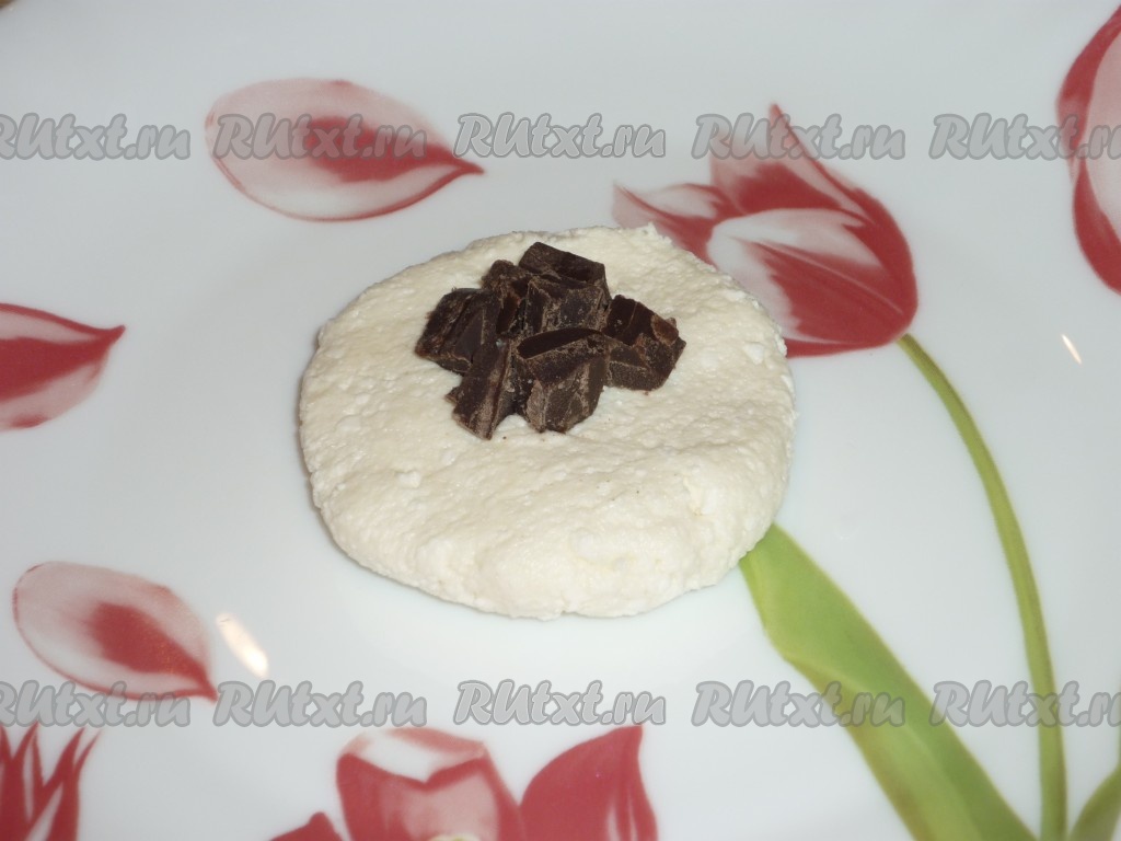 Полученную однородную творожную массу разделить на 10 равных частей. Каждую часть размять в лепешку, на середину которой выложить шоколад (можно выложить целые кусочки шоколада, а я решила измельчить шоколадку ножом, чтобы легче было формировать сырники).
