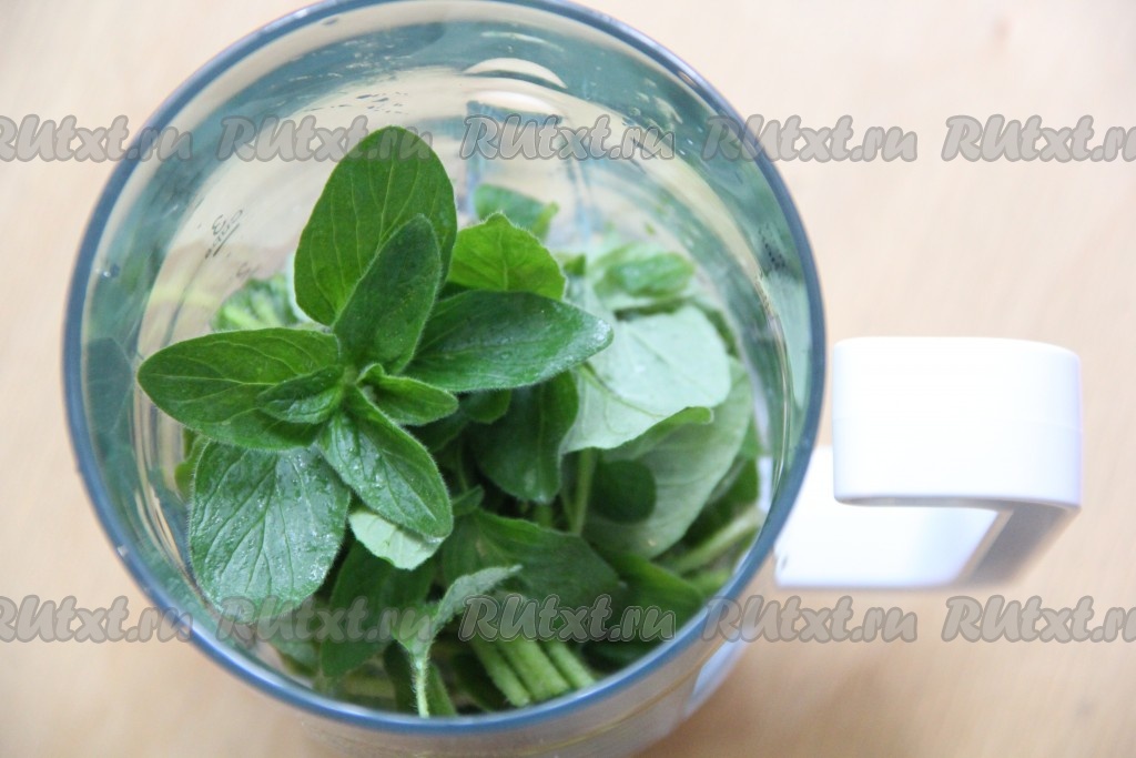 Мяту поместить в чашу блендера.