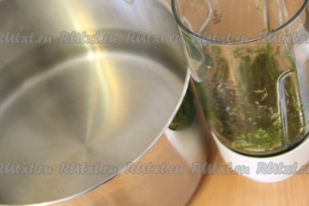 Снять кастрюлю с огня. Выложить измельченную мяту в горячую воду и хорошо перемешать. Накрыть кастрюлю крышкой и оставить до полного остывания на 6-8 часов.