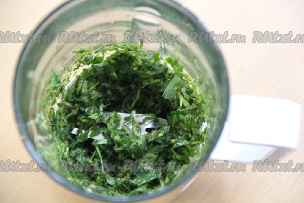 Измельчить мяту в блендере.