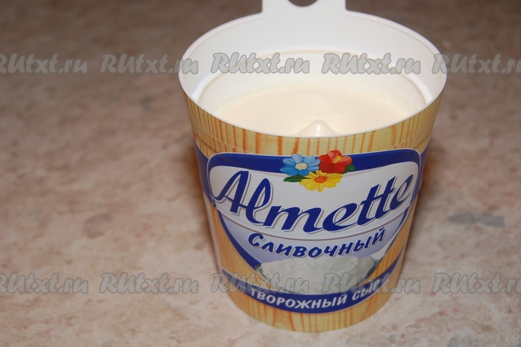 Пока тесто "отдыхает", готовим начинку для булочек. Возьмем сливочный сыр.