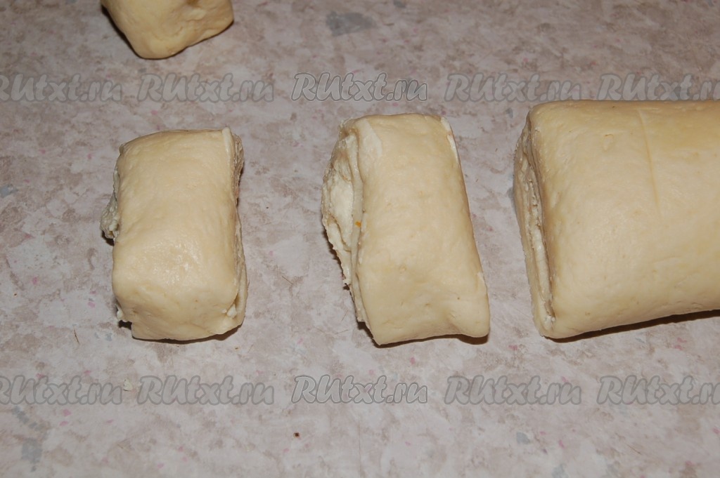 Теперь разрежем рулет на отдельные булочки, шириной  2 см.