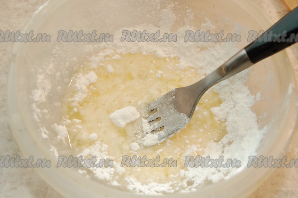 Взбиваем глазурь вилкой до такой густоты, чтобы ею можно было смазывать булочки.