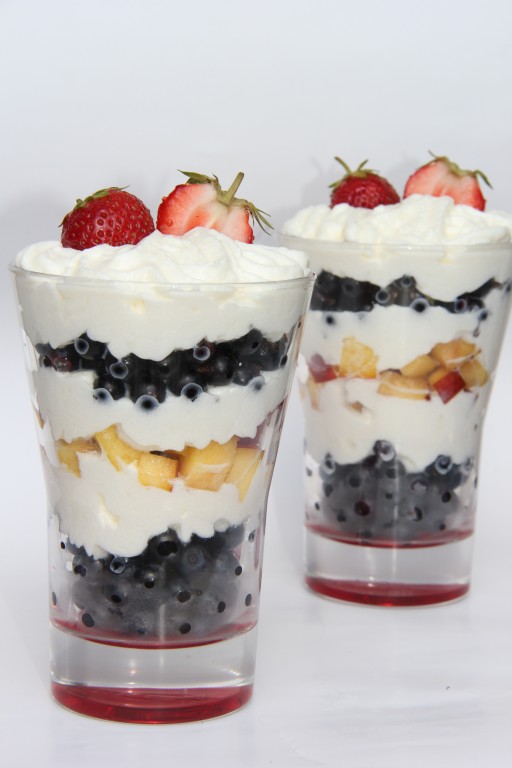Украсить верхушку десерта ягодами, листиками мяты или декоративными зонтиками и подать к столу. Десерт из взбитых сливок можно сделать за пару часов до застолья и держать его в холодильнике до подачи. Рецепт предельно прост, а лакомство получается нарядным и таким вкусным!