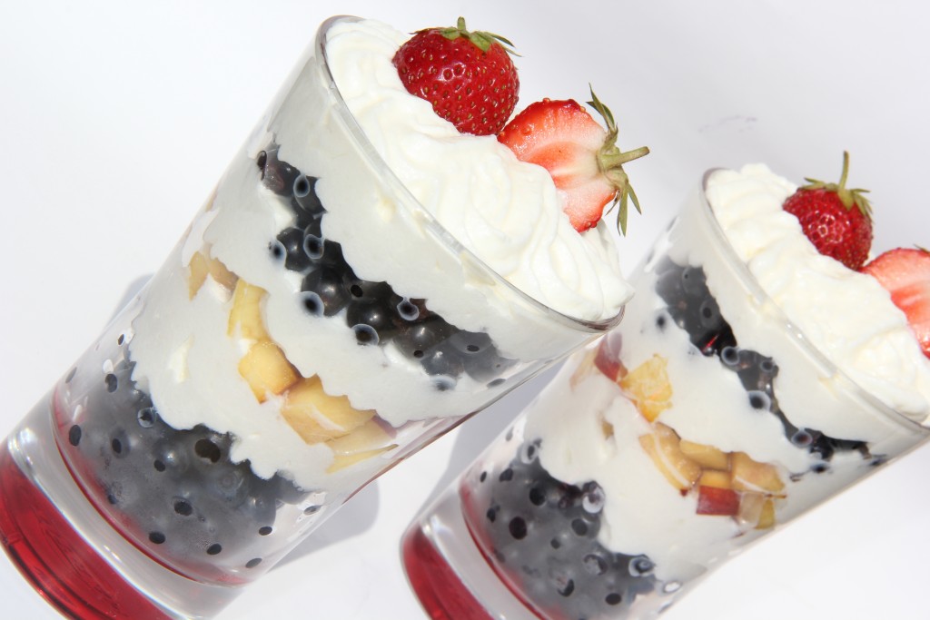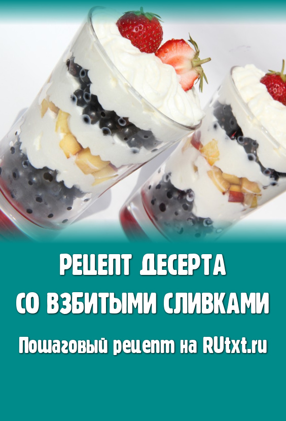 Хочу поделиться простым рецептом приготовления вкусного десерта из взбитых сливок. Сливки можно использовать молочные или на растительных маслах. Фрукты и ягоды лучше использовать свежие. Можно оформить в фужерах и подать на праздничный стол простой, яркий и очень вкусный десерт.