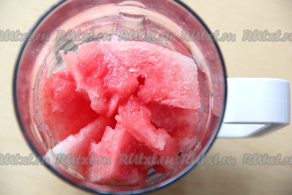 Арбуз, очищенный от семечек и кожуры, нарезать на части, поместить в чашу и измельчить блендером до получения пюре.