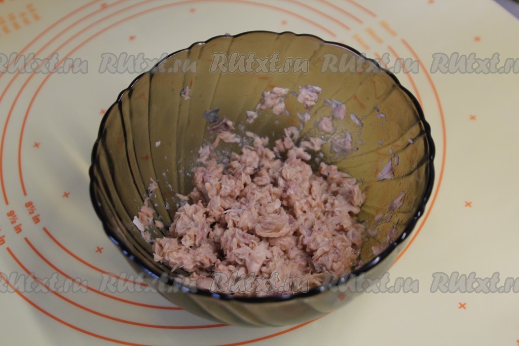 Займемся начинкой: горбушу вместе с жидкостью разминаем вилкой.