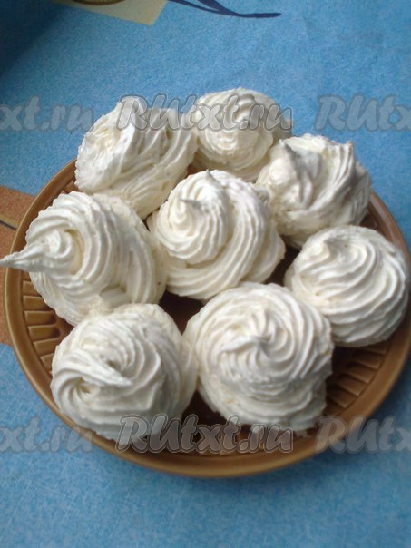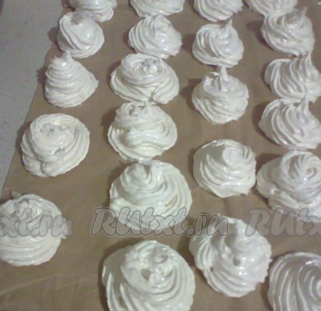 Сразу, пока масса еще теплая, отсаживаем зефиринки через кондитерский мешок (или через файл, кулек от сметаны, кефира, обрезав кончик) на пергаментную бумагу.