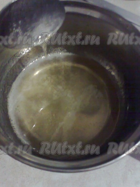 В агар с водой всыпать 450 грамм сахара, нагреть до кипения (свойства агара проявляются при нагревании) при помешивании и варить 7-10 минут на маленьком огне (до температуры 110 градусов), не накрывая крышкой, пока сироп не начнет тянуться тонкой нитью с ложки. Кастрюлю возьмите повыше, при кипении сироп сильно пенится.