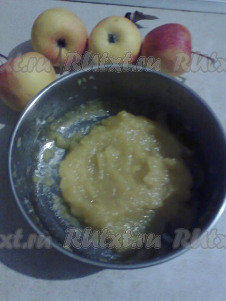 Одновременно взбиваем половину яблочного пюре миксером с половинкой белка около минуты.