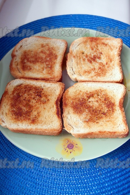 Хлеб смажьте с двух сторон сливочным маслом и на сухой сковороде обжарьте с двух сторон до золотистости.