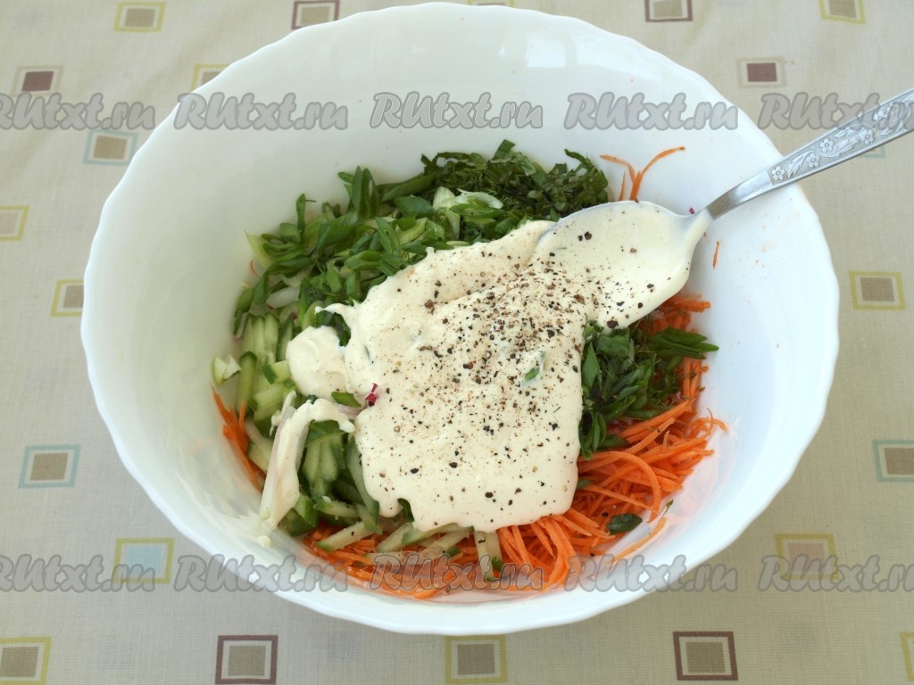 Для приготовления салата из огурцов, редиса и моркови вам понадобится: