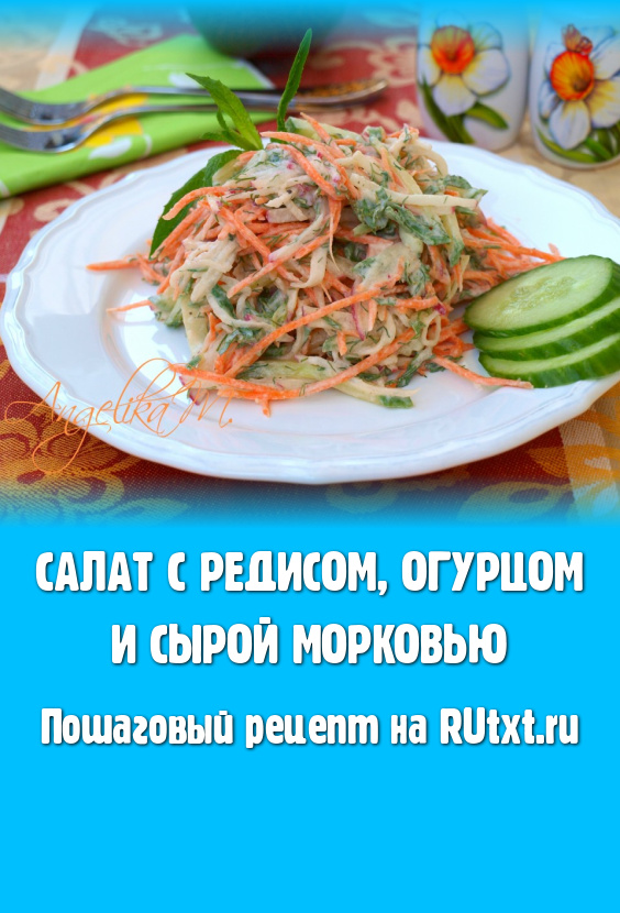 Подать к завтраку или ужину. Салат из огурцов, редиса и моркови получается полезным и вкусным.