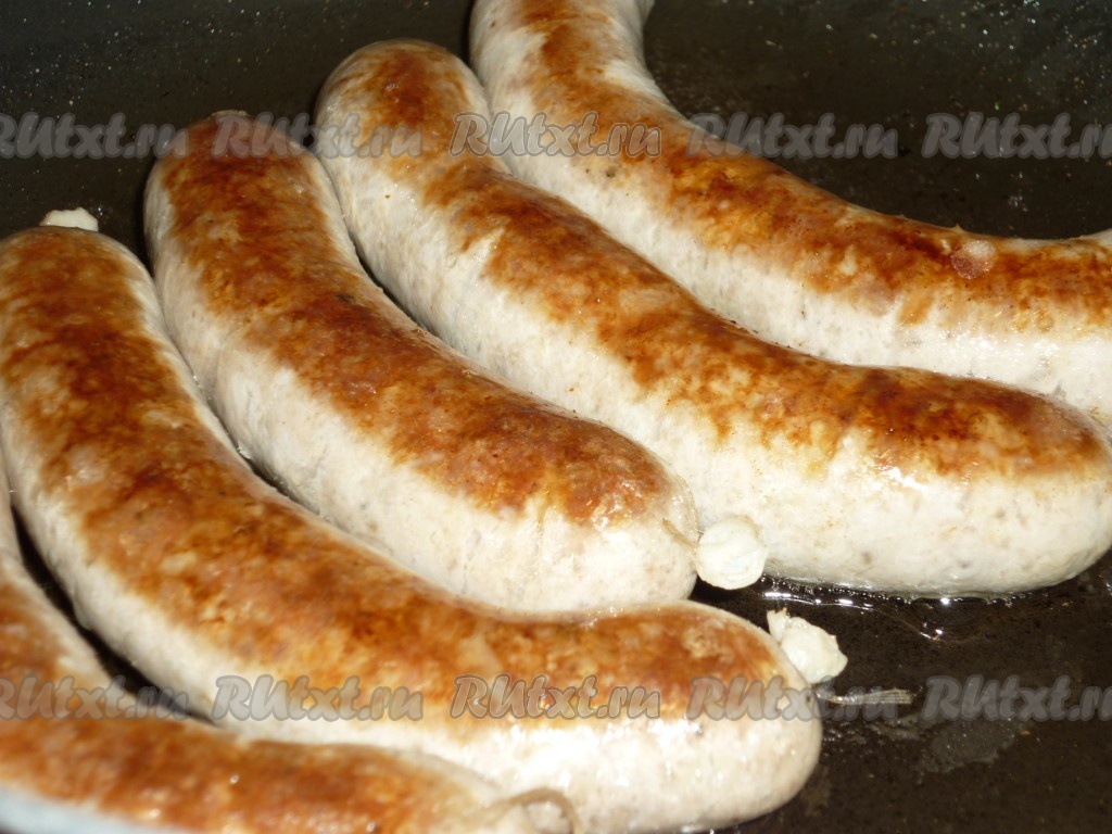 Достать из кастрюли и полотенцем убрать с колбасок излишки воды. На сковороде разогреть небольшое количество растительного масла и обжарить колбасу с двух сторон до румяной корочки (примерно по 2-3 минуты с каждой стороны).