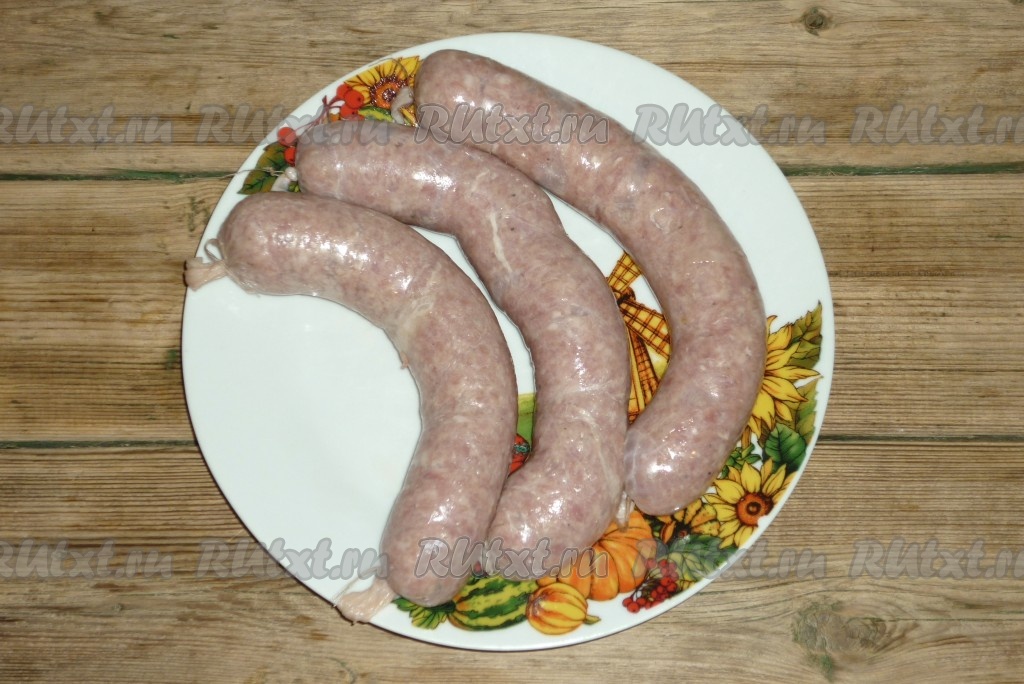 По всей длине колбасок сделать иголкой проколы, чтобы в процессе приготовления они не лопнули.