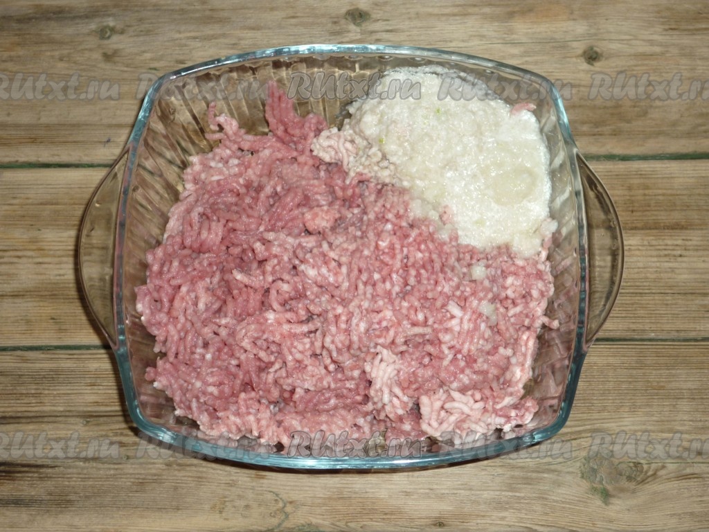 Посолить и поперчить по вкусу. Хорошо перемешать полученный мясной фарш.