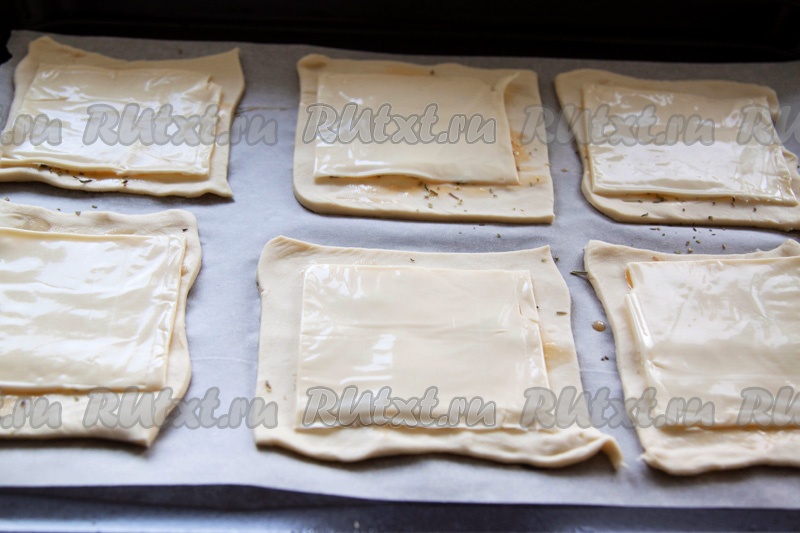 Запекайте слойки 20 минут в предварительно нагретой до 180 градусов духовке.