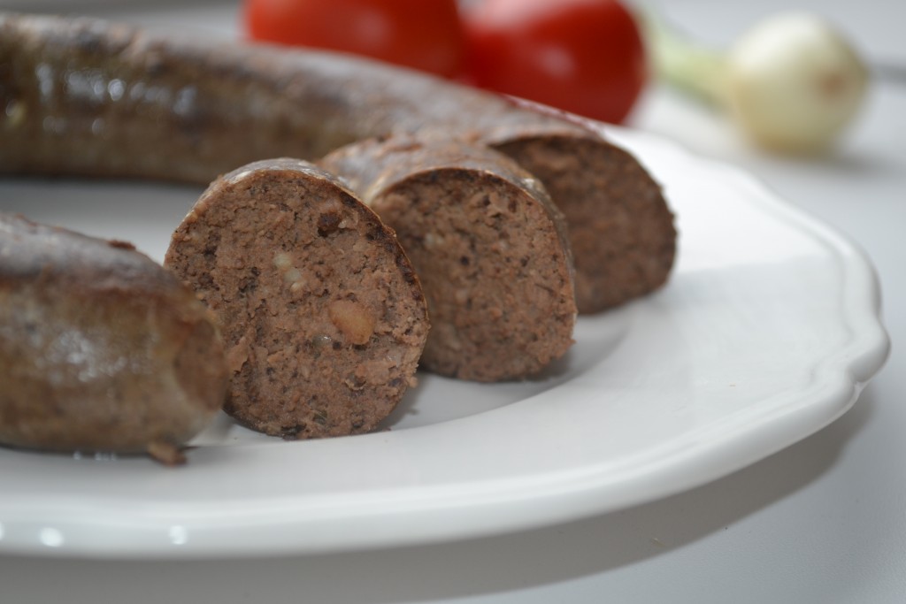 Иглой прокалываем в нескольких местах наполненные кишки и погружаем в кипящую воду. Отвариваем 10 минут. Для красивого вида и усиления аромата перед подачей домашнюю печеночную колбасу необходимо запечь в духовке до появления красивой, румяной корочки.