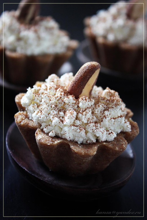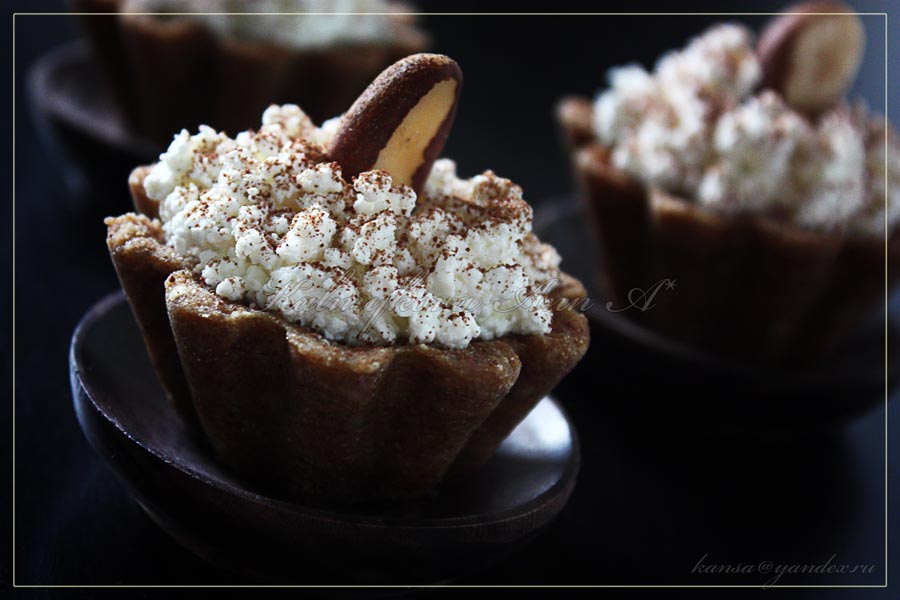 Корзиночки наполнить творогом, присыпать шоколадом и добавить орехи. Употреблять сразу, либо через какое-то время охлажденными из холодильника.