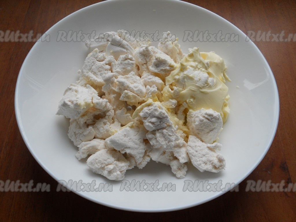В микроволновке нагреть масло с зефиром при полной мощности в течение 2-3 минут. Зефир раздуется, станет мягким, а масло растопится. Полученную массу нужно сразу же взбить миксером.