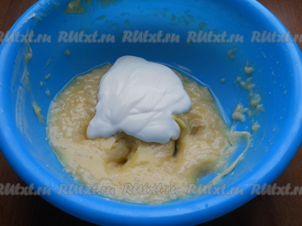 Затем получившуюся массу хорошо охладить, лучше поместить в морозилку на 40-60 минут (следите, чтобы не замерзла). Масса хорошо загустеет. И далее добавить сметану.