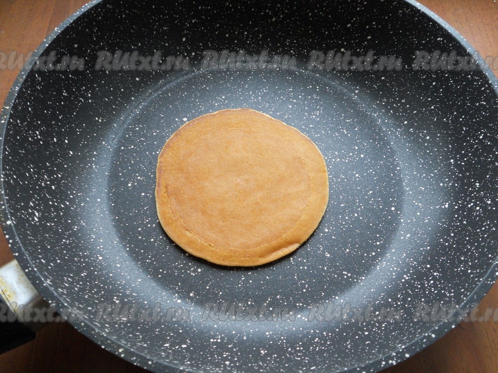 Блинчик перевернуть и жарить с другой стороны около 30-40 секунд также, на небольшом огне.