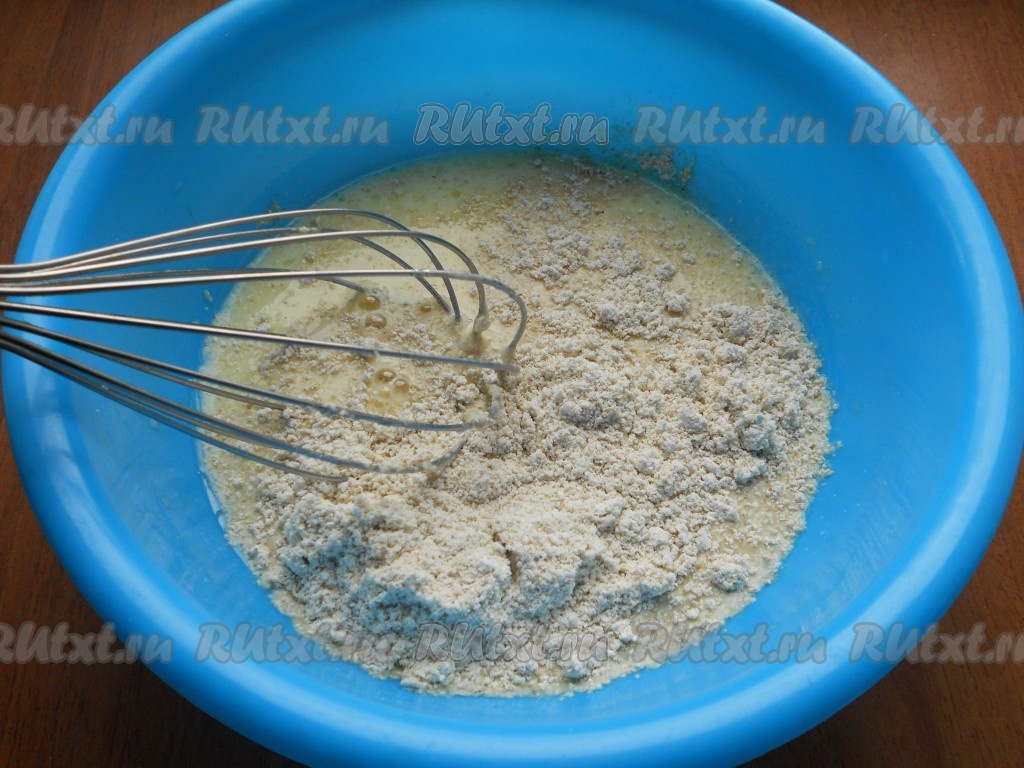 Тщательно все взбить венчиком. Всыпать овсяную муку.