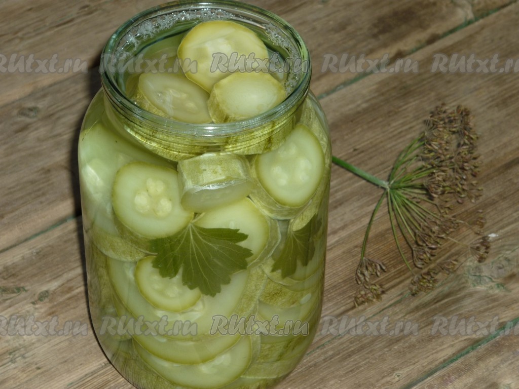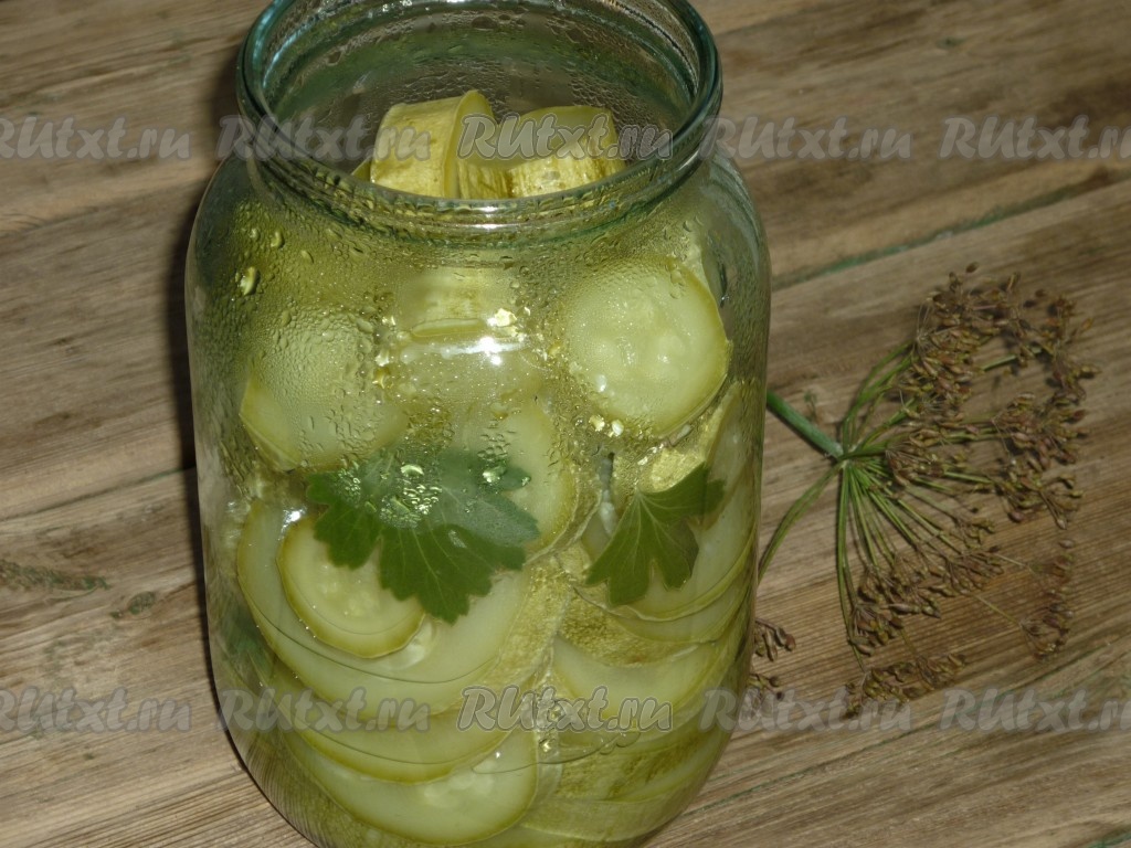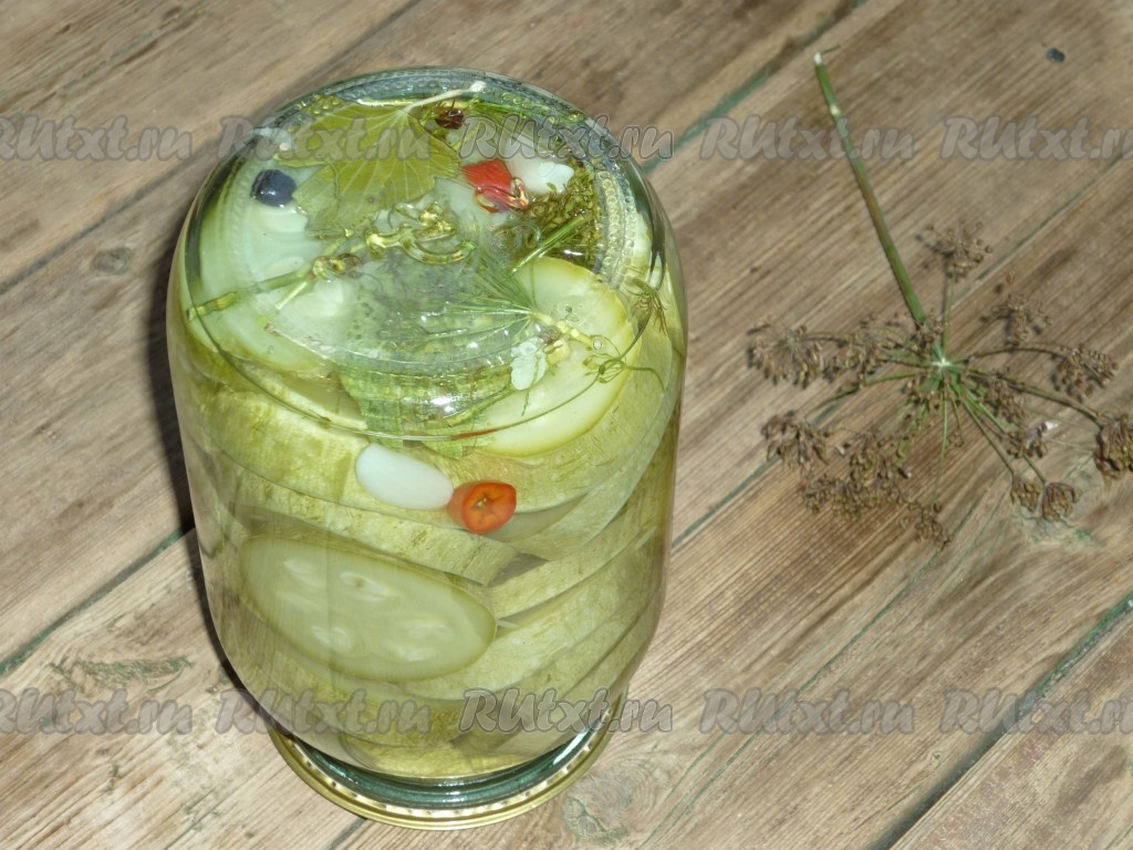 Залить кабачки кипящим маринадом, в котором они варились.