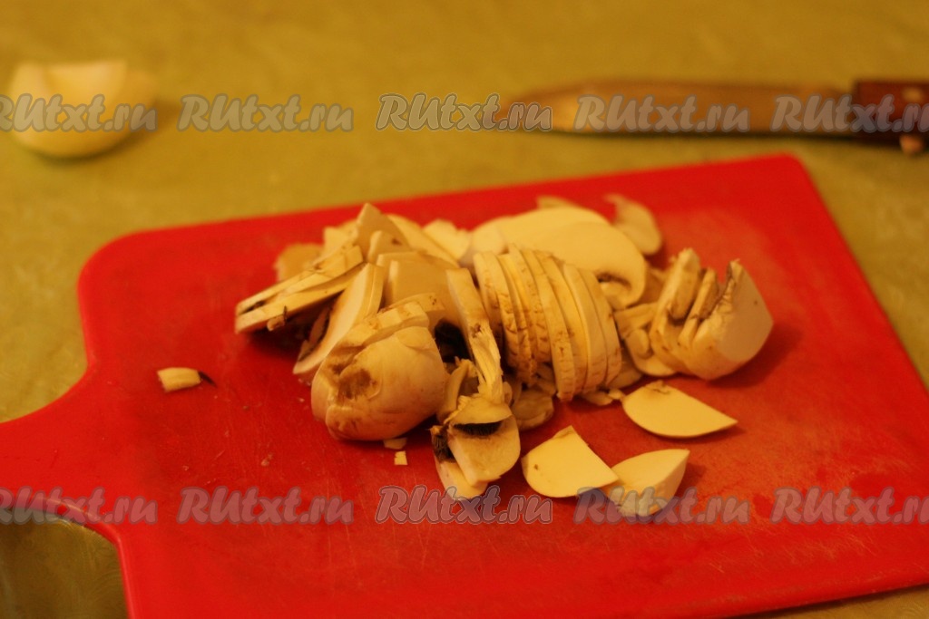 Шампиньоны нарежьте небольшими кусочками.