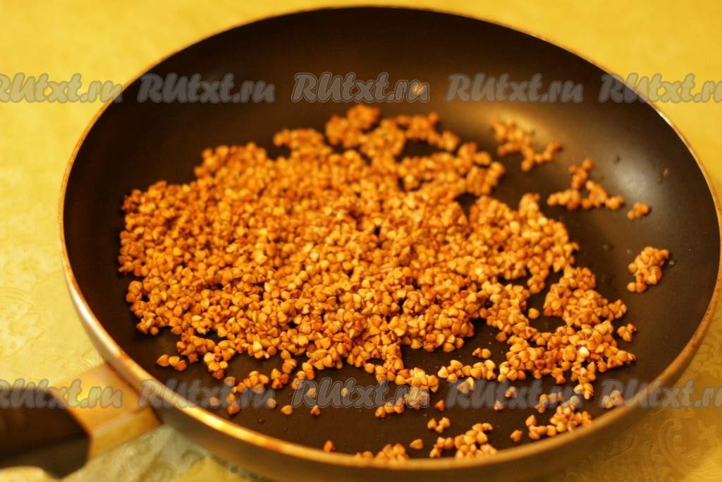 Гречку промойте и обжарьте на сухой сковороде, постоянно помешивая примерно 5 минут. Пока гречка не приобретет чудесный аромат.