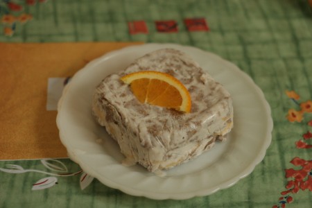Убираем в морозилку на 2 часа (чтобы легче было резать) и подаем наше пирожное из печенья без выпечки.