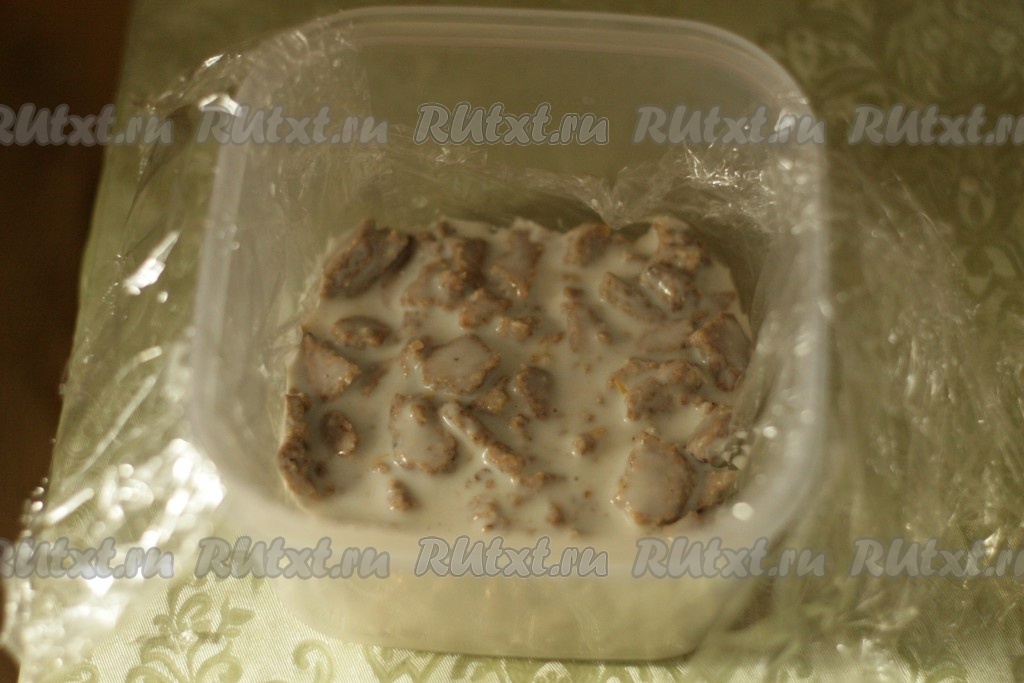 Слои повторить. Последний слой – печенье. Накрываем все пищевой пленкой.