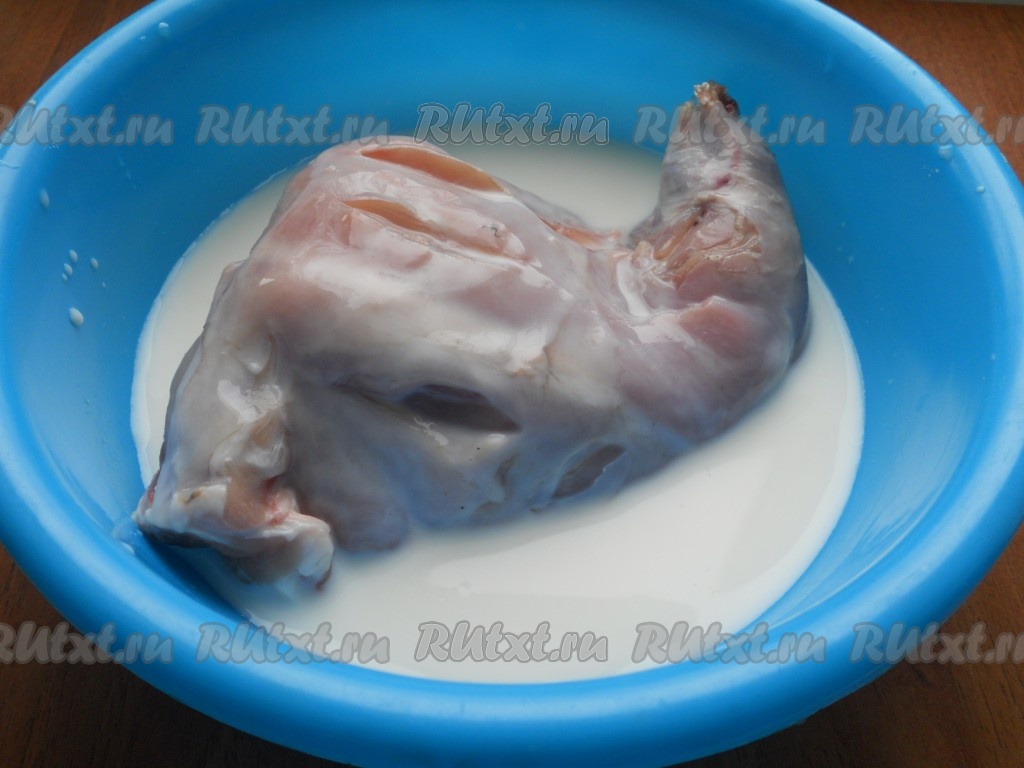 Залить кролика молоком и оставить на 3-4 часа, периодически ножку переворачивая.