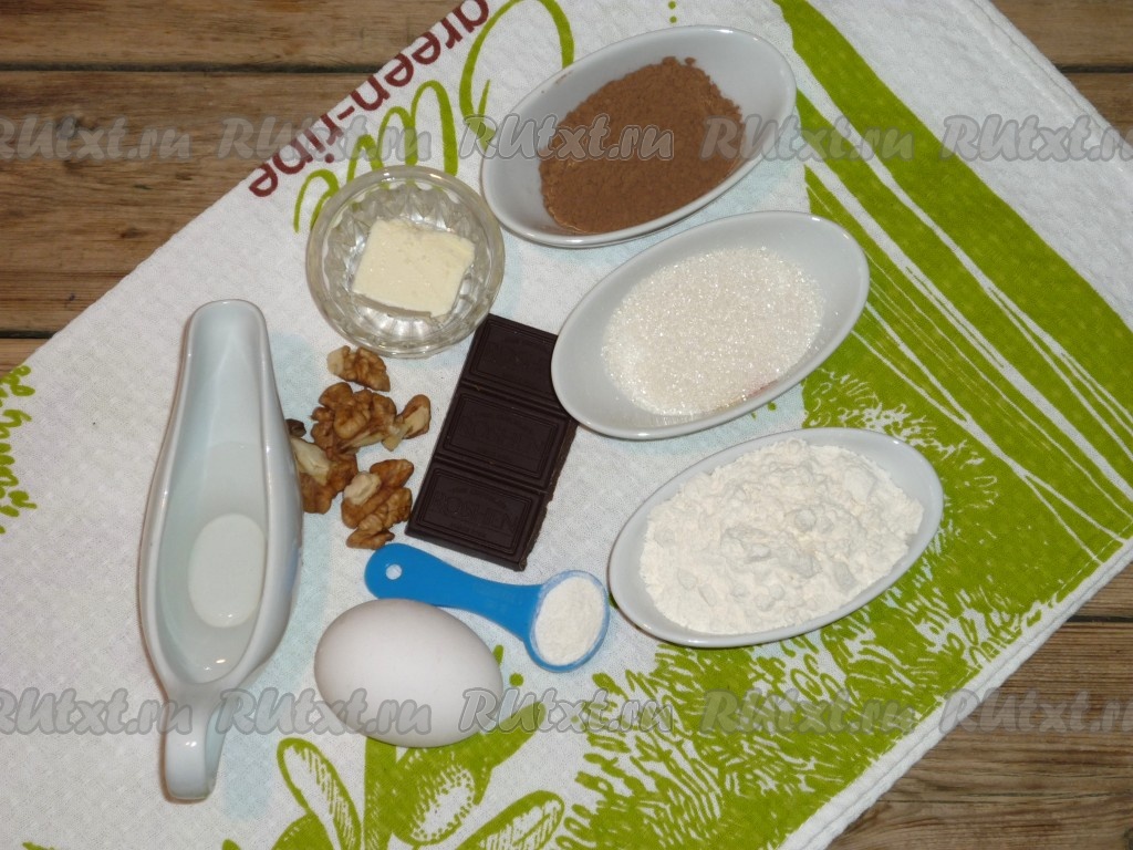 Кружку, которая подходит для выпечки в микроволновой печи, слегка смазать растительным маслом. Тесто выложить в кружку, заполняя её на 1/2 объёма, так как при выпекании шоколадный кекс очень хорошо поднимается.