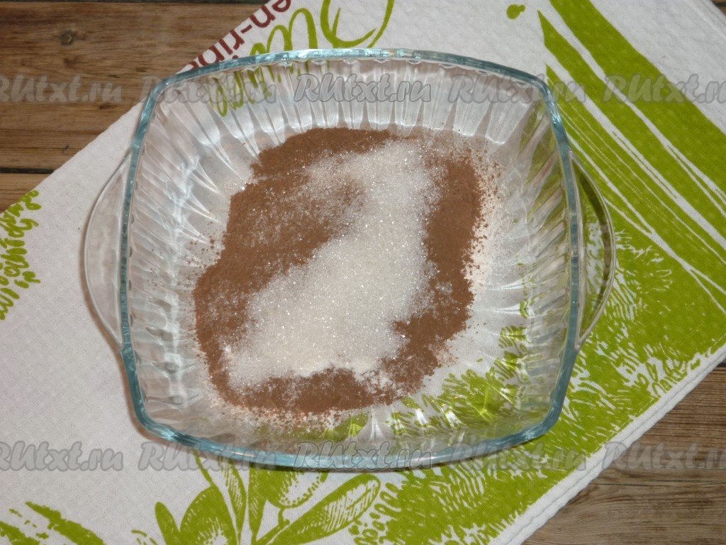 В сухую миску всыпать какао и муку.