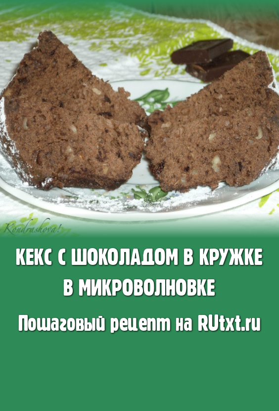 Иногда бывают такие моменты, когда хочется чего-нибудь сладкого, а стоять на кухне нет никакого желания. В таких случаях очень помогают простые рецепты для микроволновой печи, одним из которых хочу сегодня поделиться. Кекс с шоколадом готовится в кружке в микроволновке всего лишь за 5 минут, а получается вкусным, ароматным. Он станет замечательным дополнением к чаю!