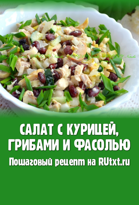 Выложить в салатник, украсить зеленью. Простой, но очень вкусный салат с курицей, грибами и фасолью можно пробовать. Уверена, вам понравится!