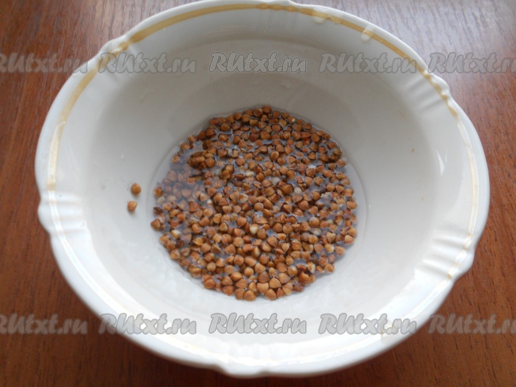 Гречневую крупу, если нужно, перебрать, испорченные зёрнышки нужно убрать. Хорошо промыть гречку водой, лишнюю воду слить.