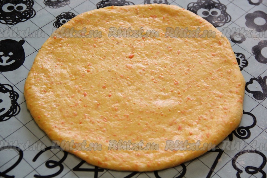 Большую часть теста раскатать в круг (тонко не раскатывайте!).