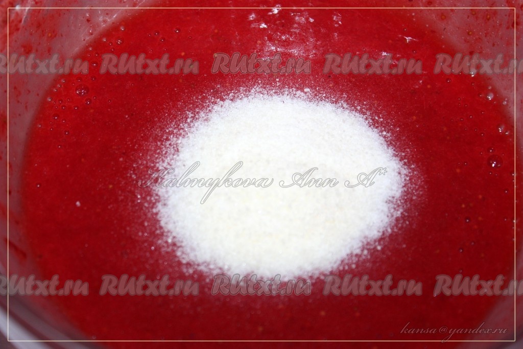 В полученную клубничную массу добавить желатин, перемешать и оставить для набухания желатина на 10-15 минут.