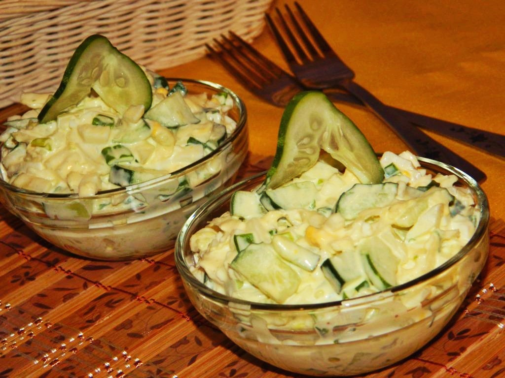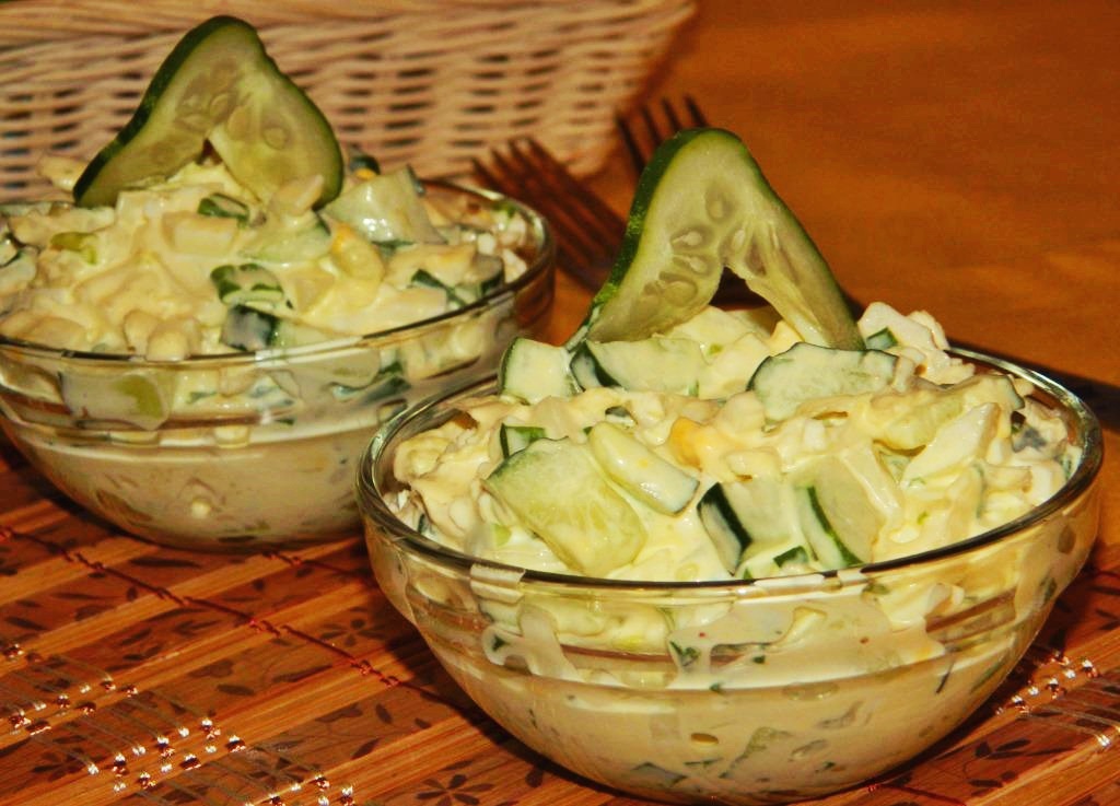Аппетитный, сочный салат из пекинской капусты, свежих огурцов и варёных яиц готов, он станет отличным дополнением к мясу и другим блюдам. Приготовьте этот простой, достаточно сытный салатик и насладитесь его приятным вкусом!