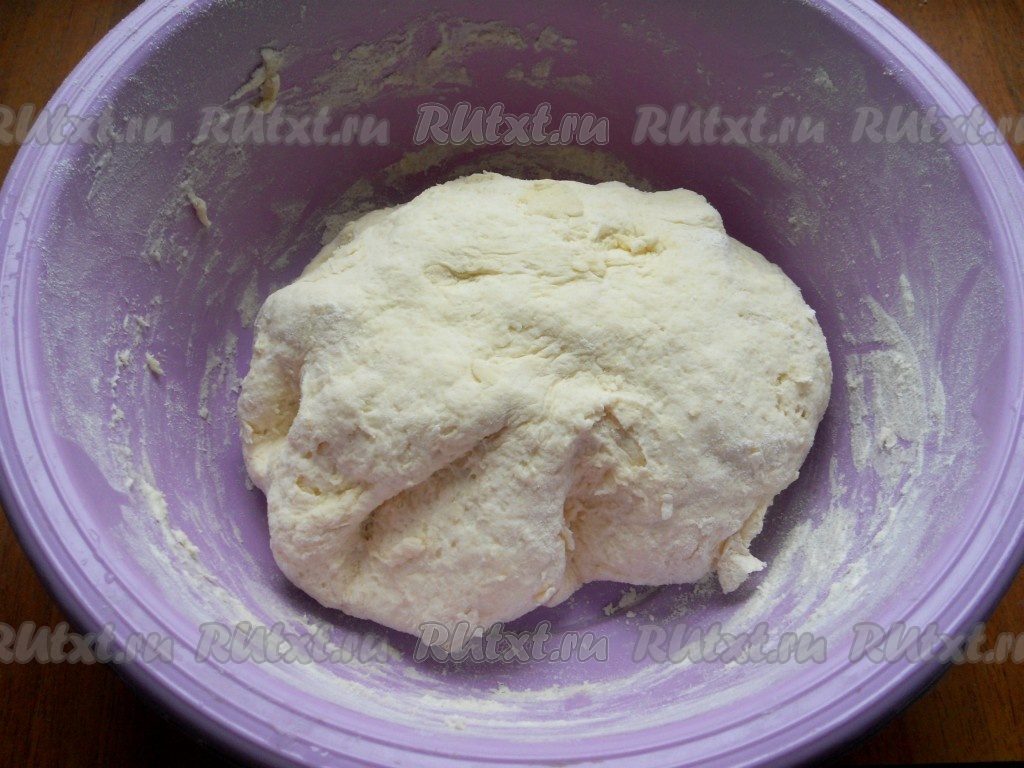 Замесить тесто. Йогурт добавляйте частями, тесто должно быть мягким, не тугим, немного липнущим.